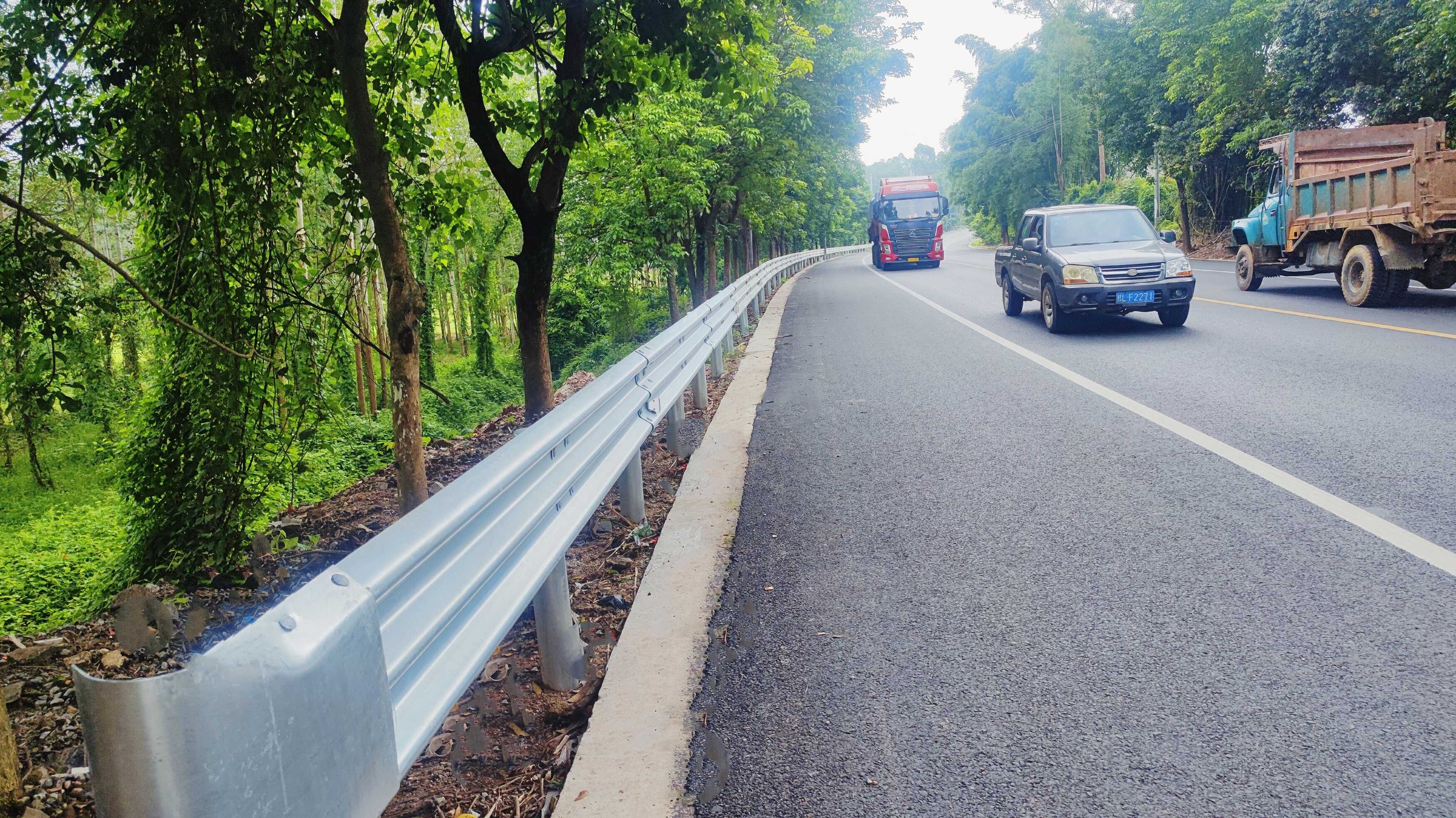防护栏安装后的国道359线佛山至富宁公路K480+350玉林市博白县径口镇三育村路段公路。(冯卿超?摄)
