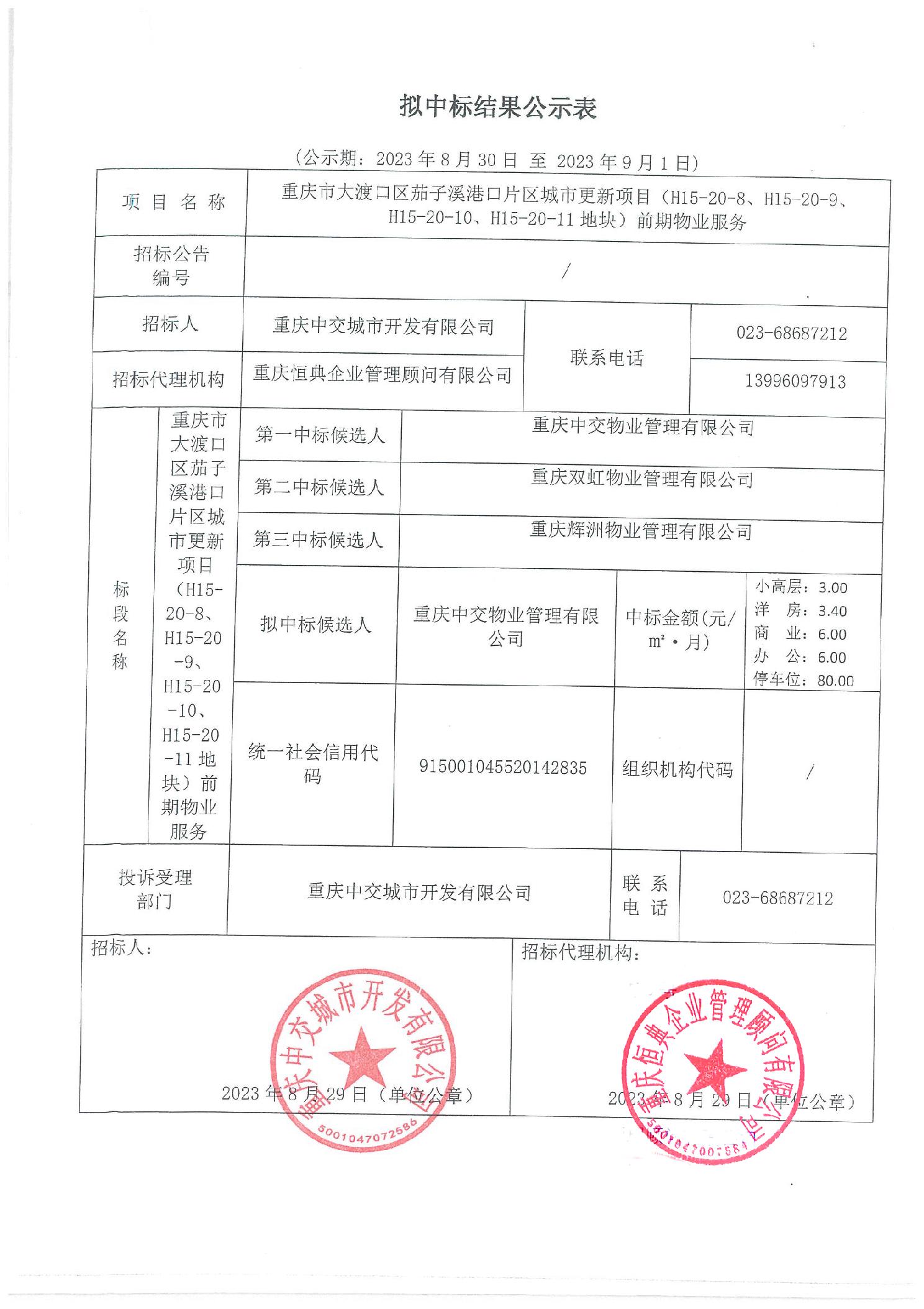 重庆市大渡口区茄子溪港口片城市更新项目(H15-20-8、H15-20-9、H15-20-10、H15-20-11地块)前期物业服务