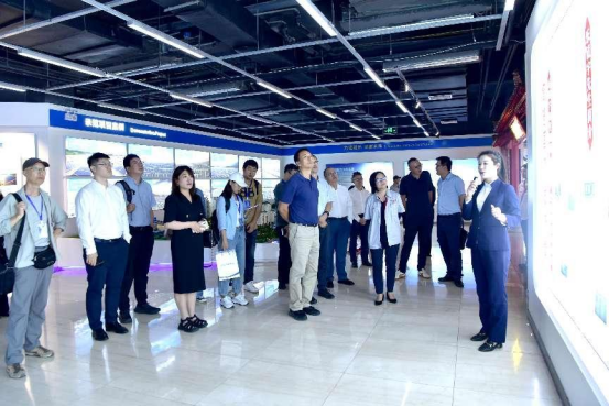 图为中央媒体团参观集团展厅认真听取讲解