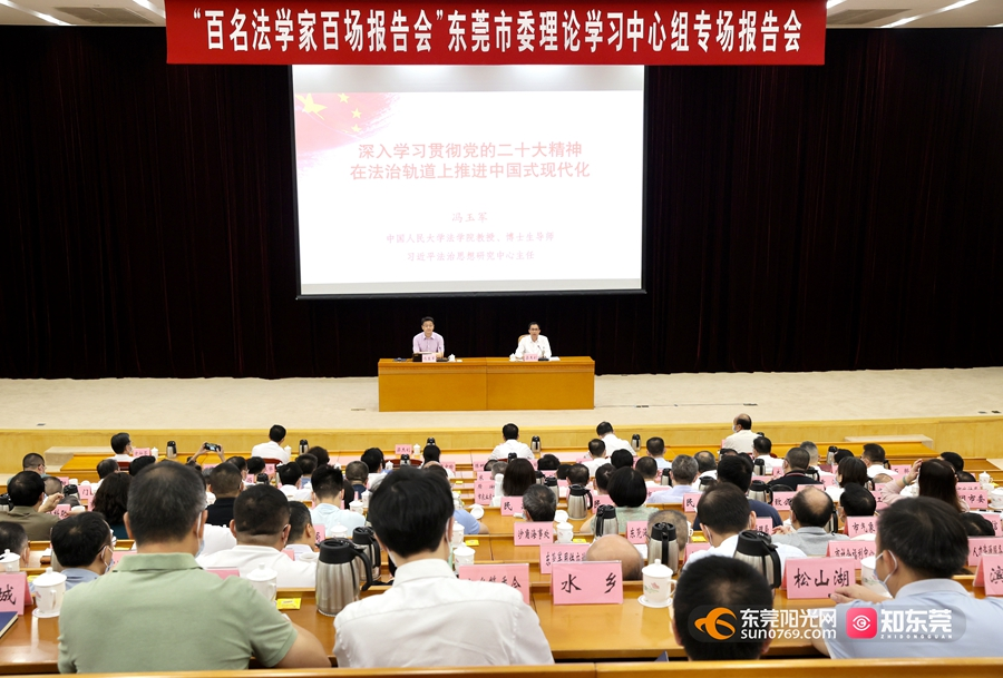 8月31日,东莞举行“百名法学家百场报告会”市委理论学习中心组专场报告会。会议邀请中国人民大学习近平新时代中国特色社会主义思想研究院副院长、法学院教授、博士生导师冯玉军作专题辅导报告。市四套班子有关领导出席报告会。