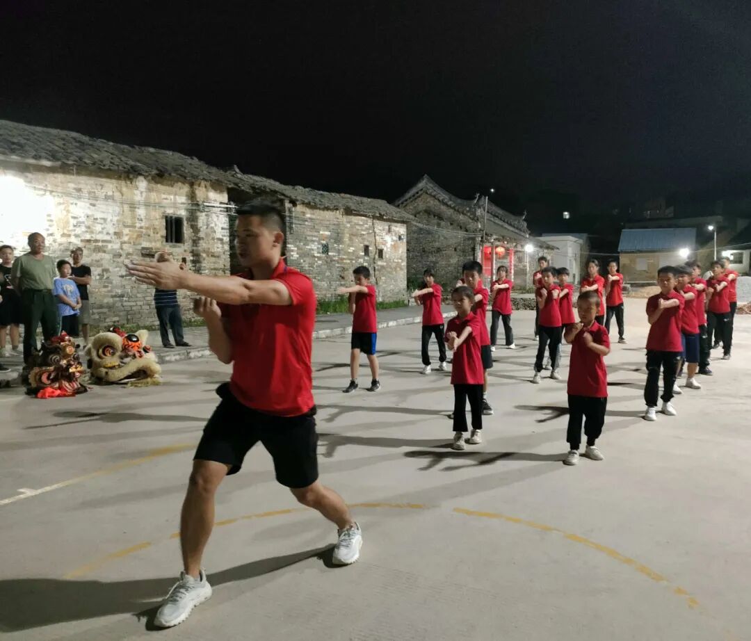 “咚咚锵锵、咚咚锵锵……”8月29日晚上9点,龙门县龙城街道林村祠堂前,一群小朋友在林村龙形拳国术健身会教练的带领下,又聚在一起练习龙形拳了。