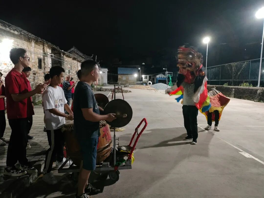 这天晚上,学员们又跟着教练练习,暑期将尽,大家非常珍惜有限的学习时间。在教练的带领下,大家首先练习了龙形拳基本功,随后,在锣鼓助威下,学员们先后展示了个人学习成果,还上演了舞狮表演,有板有眼的架式赢得了围观村民的热烈掌声。