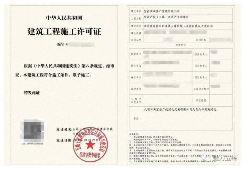 近日,宜昌产投(五峰)医药产业园项目建设单位委托施工单位中铁建工集团有限公司,为其办理建筑工程施工许可证。工作人员通过线上申请、线下在县政务服务中心提交资料,仅一天时间便取得了与纸质证照具有同等法律效力的电子证照。