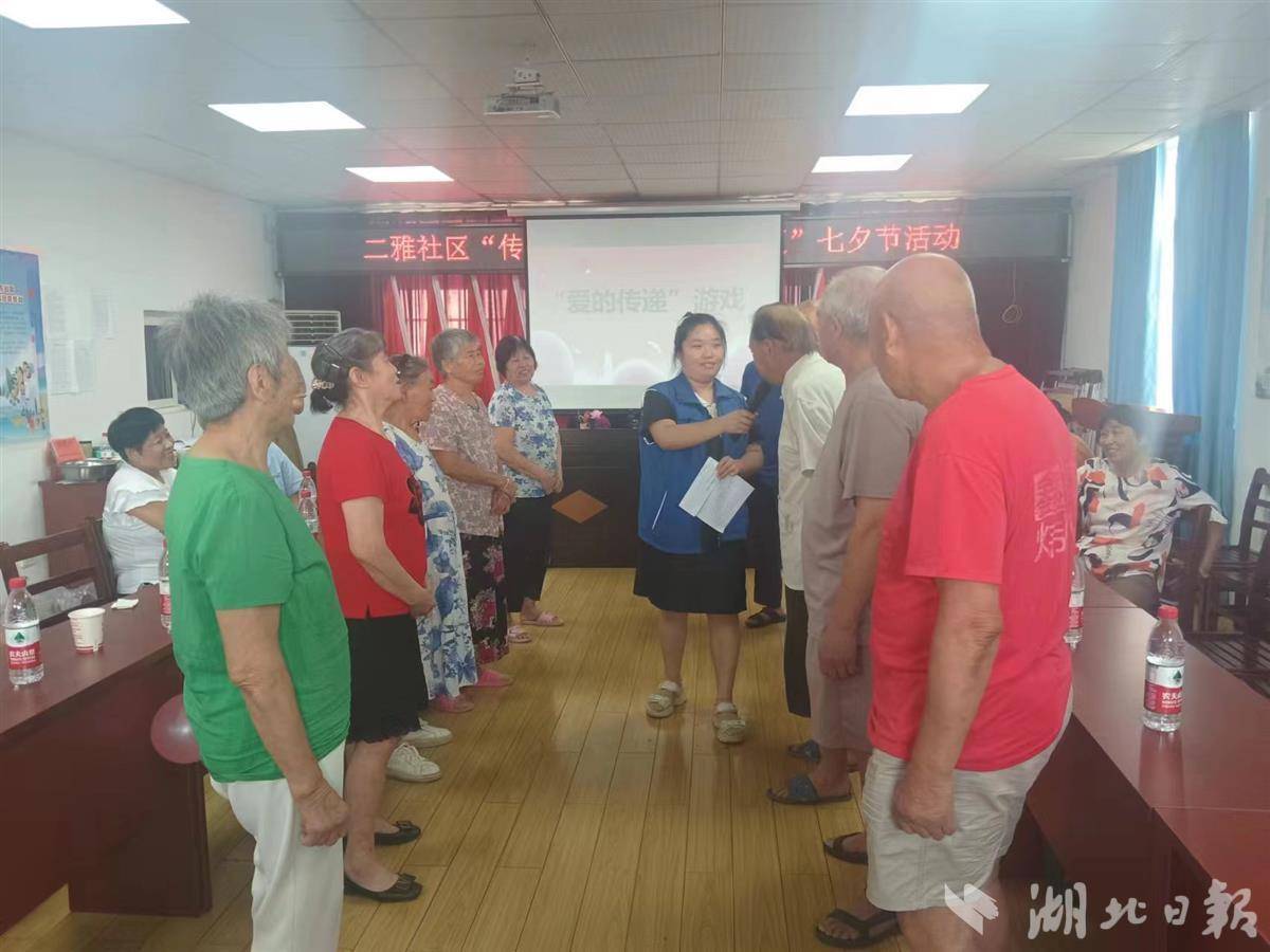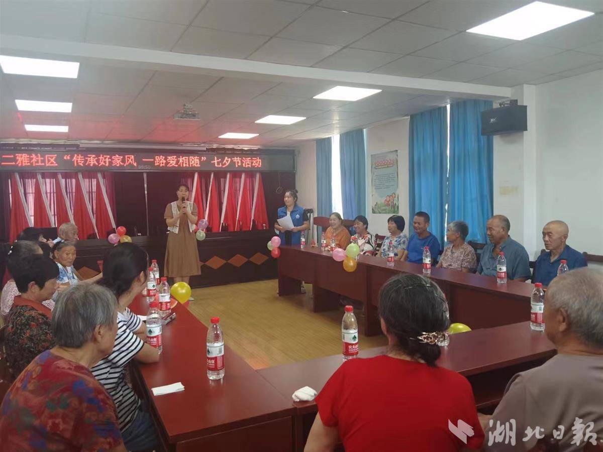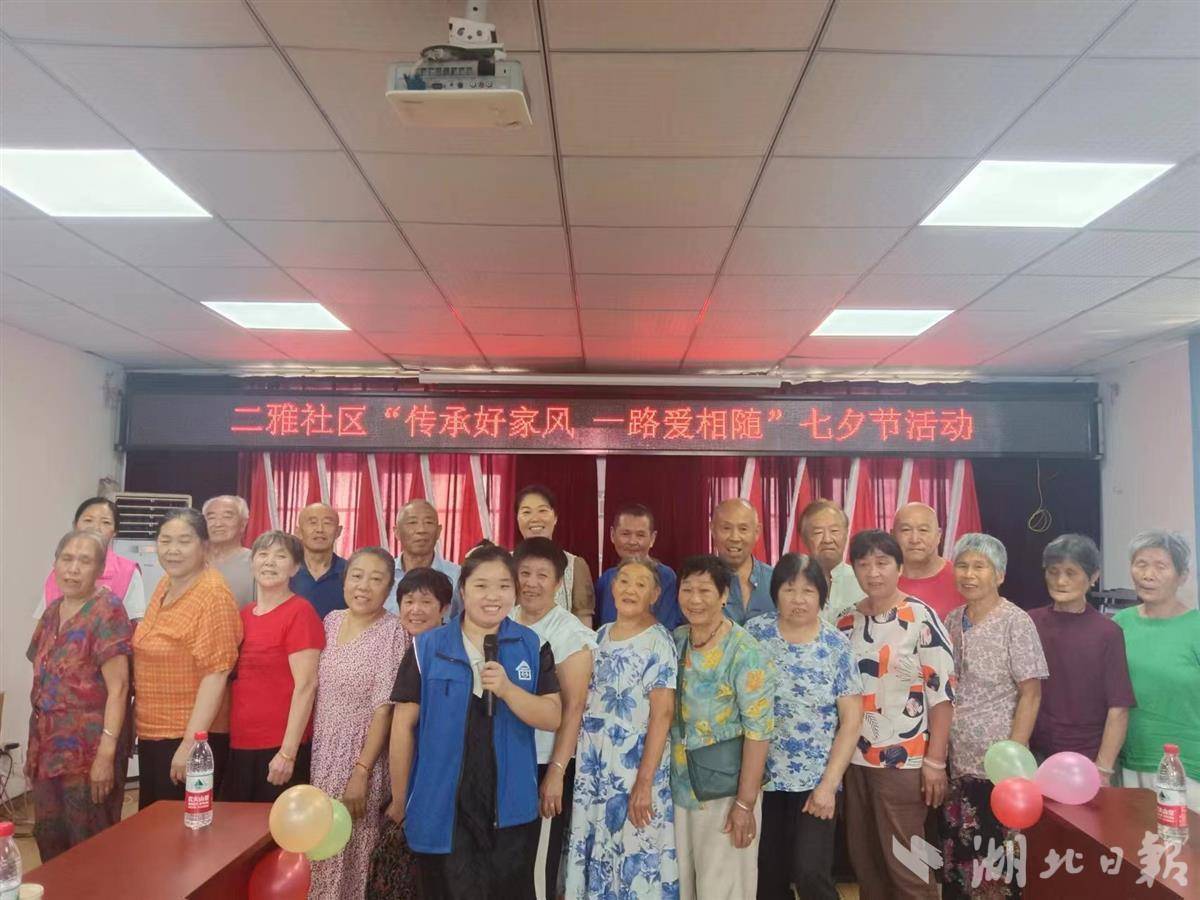湖北日报讯(通讯员宗小建)传统节日七夕即将到来,为传承传统文化,引导居民树立正确的爱情观、婚恋观,提升老年人的幸福感,8月16日,武汉市东西湖区长青街二雅社区联合湖北供销福合养老服务有限公司驻点社工,为辖区金婚、银婚夫妻开展“传承好家风,一路爱相随”七夕节活动。
