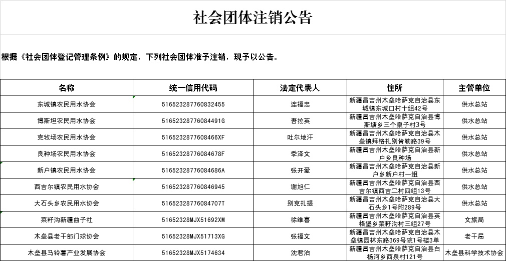 为进一步加强对社会组织活动事项以及资产的监督,根据社会组织相关法规和文件要求,现对下列社会组织予以注销前公示: