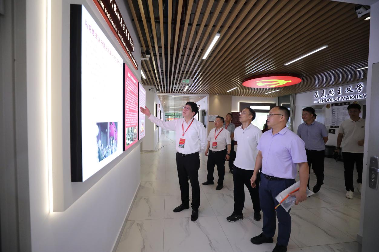????在马克思主义学院领导班子陪同下,黄照权书记一行来到A9栋博雅楼参观考察学院文化建设情况,并在学院会议室学院教师代表举行座谈。座谈会上,学院领导重点围绕新学期的党建工作、教学工作、科研与学科建设工作以及本科教育教学审核评估的准备工作等方面作总体工作情况汇报,并分别汇报了各自分管工作中存在的难点问题;学院部分教师也结合实际,针对学院建设及教师发展的问题提出了各自的意见与建议。