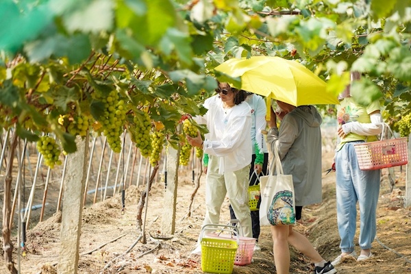 8月的东山街是最甜蜜的时刻,东风新社区、五一社区等多个社区的葡萄大棚里,挂满了翠绿的阳光玫瑰,为前来游玩的旅客增添一份采摘趣味。荆门的程女士在朋友邀约下,来东山体验采摘葡萄,“东西葡萄很有名,价格实惠,味道好吃,以后还要来。”程女士说。