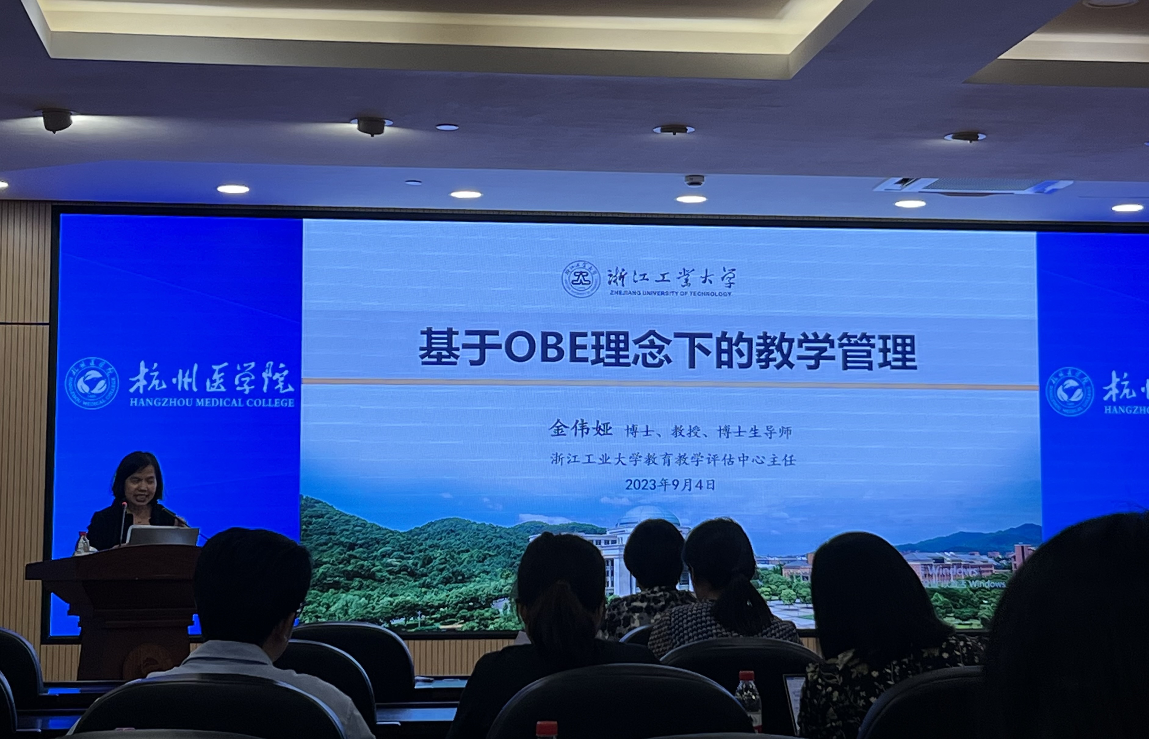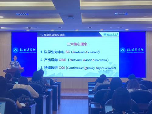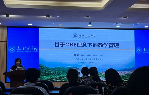 为迎接合格评估,提升教学管理人员的职业素养与管理能力,助力教学管理工作规范运行,9月5日下午,校教师教学发展中心邀请浙江工业大学教育教学评估中心主任、教务处副处长金伟娅来我校开展教学管理人员专项培训——“基于OBE理念下的教学管理”专题讲座。活动由教师教学发展中心主任周彩华主持,校教学管理人员共计60余人参加。