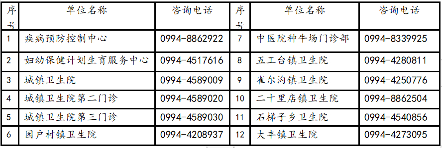 接种点及咨询电话: