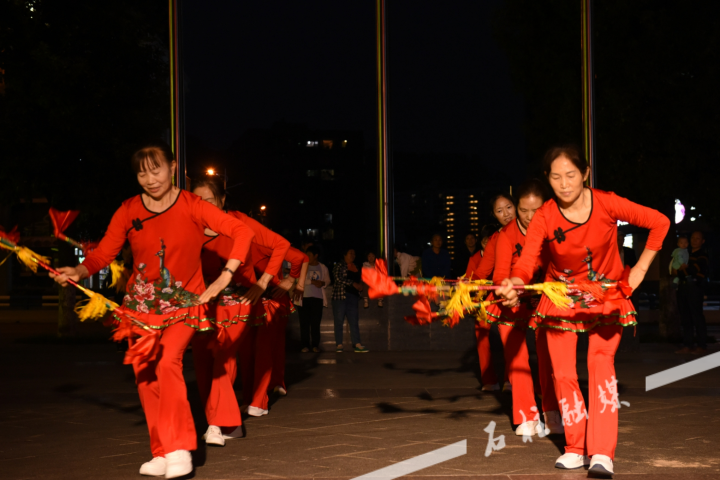 随着国庆节的到来,我县各街头小巷变得热闹起来。9月30日晚,石柱南宾尚城队的老年队员们在高城大厦跳起各种舞蹈,通过特别的方式为祖国母亲献礼。
