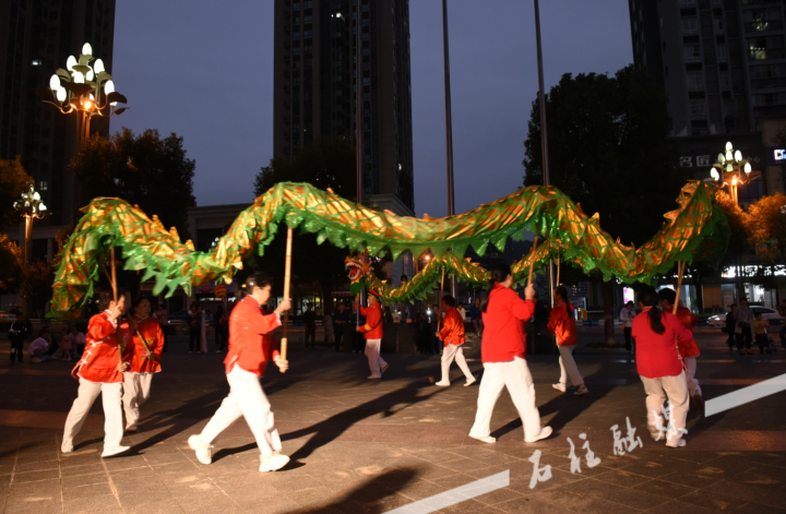 活动现场,《祖国您好》《歌唱祖国》《红玫瑰 土家妹》以及玩龙灯等文化节目轮番上演,整个广场变得异常热闹,吸引无数市民驻足观赏。