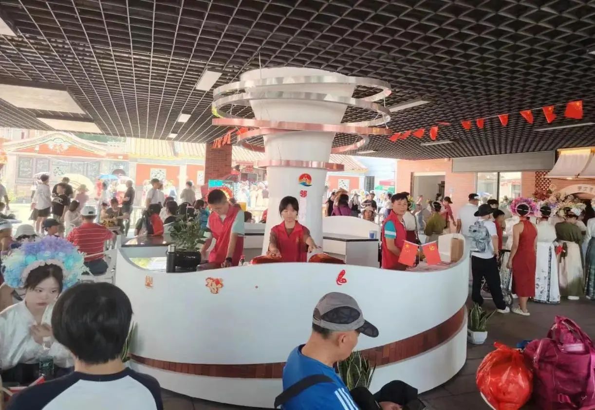 为全力保障蟳埔文化保护区“两节”期间游客服务,东海街道党工委在文化保护区一线成立项目临时党支部,采取租赁、改造方式,抢抓时间建设占地面积约三百平方米的蟳埔游客服务驿站(邻里驿站)、村口地标性建筑,下沉蟳埔文化向导、党员志愿服务、游客咨询等服务26项,不仅能供大家喝水、歇脚、纳凉,还有免费的医疗箱、充电宝、雨具等可使用。该驿站采取“街道+社区+第三方”联合运营模式,并为游客提供物美价廉的文旅IP产品。