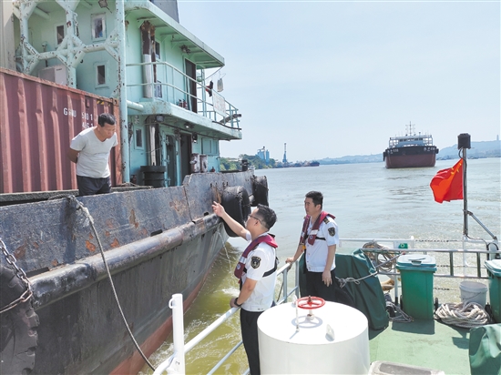 江门海事局执法人员对辖区船舶进行防台风安全提醒。 郭永乐 黄子华供图