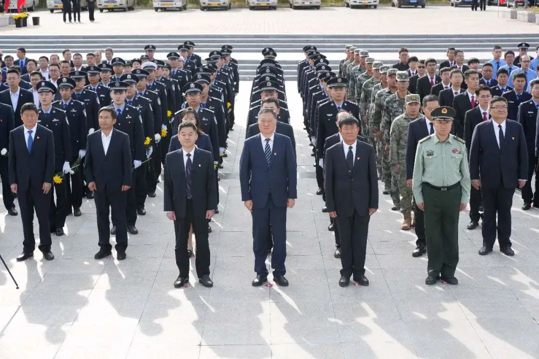 随后,全体人员依次走到纪念碑前,敬献鲜花并瞻仰烈士纪念碑和英烈墙,深切缅怀革命先烈的丰功伟绩,寄托无限哀思。