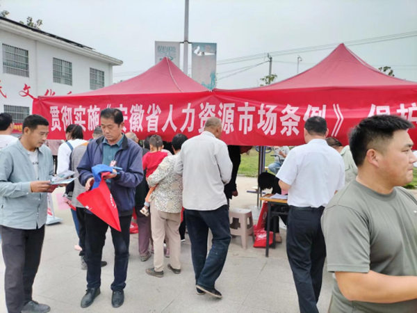 金秋送爽,政策入村。9月28日,泗县人力资源服务政策宣传活动在刘圩镇刘圩村村部广场举行。