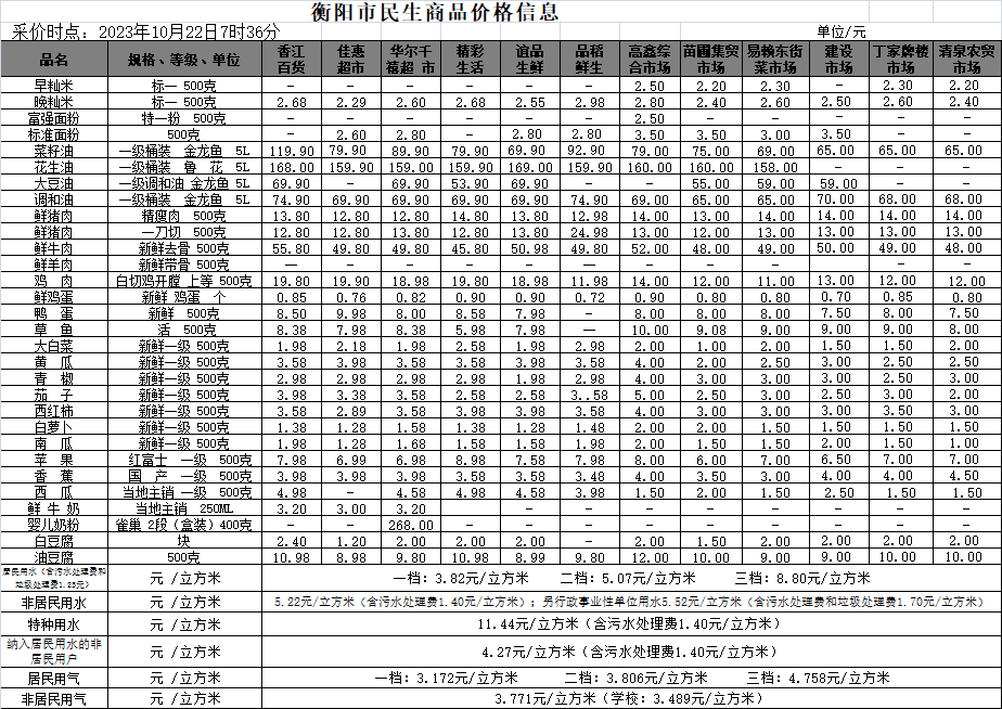 【物价】 2023-10-22衡阳市民生价格信息
