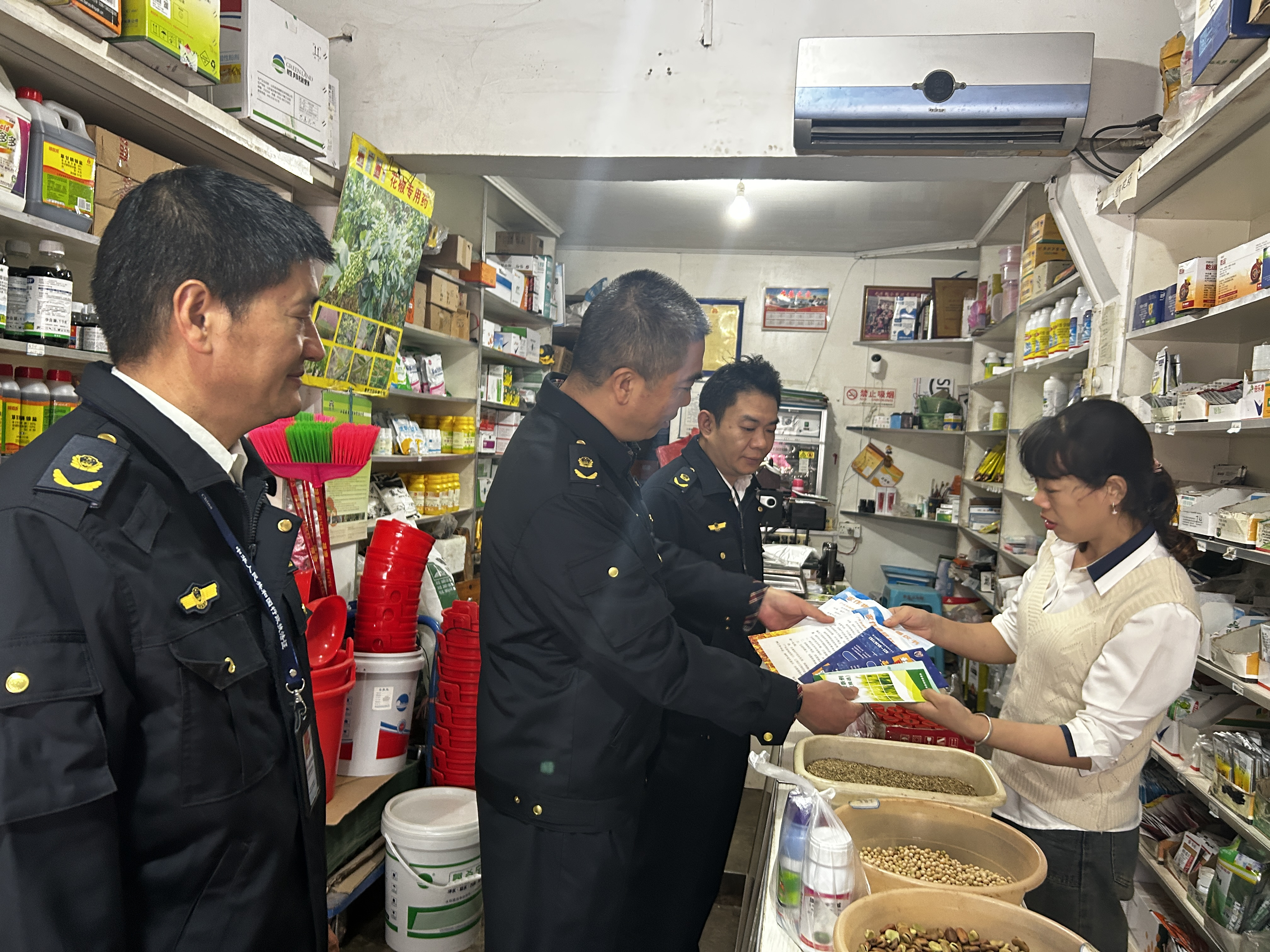 图2:执法人员向经营户发放宣传资料