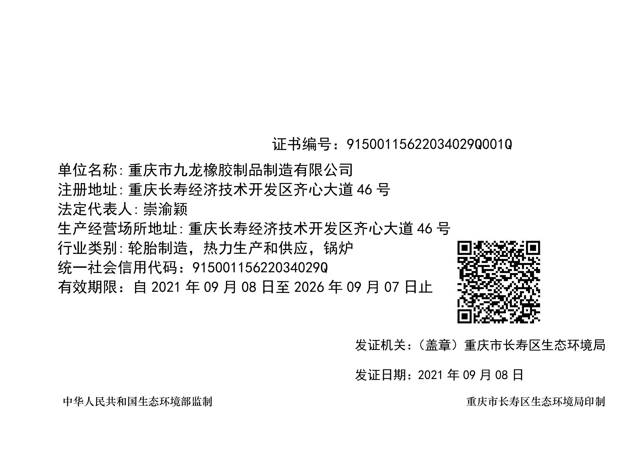 重庆市九龙橡胶制品制造有限公司排污许可证