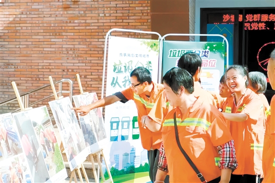 环卫工人参观沙塘镇“用瞬间致敬环卫工”影像绘画展览。