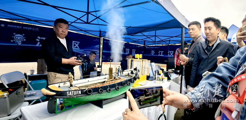 “土星”号蒸汽机拖轮模型制作者,江汉区教育局教研培训中心教研员王颖擎介绍:“土星号船体有4000颗铆钉。”这条模型船除动力和遥控设备外,其他部件全部手工开料制作,工期长达一年。