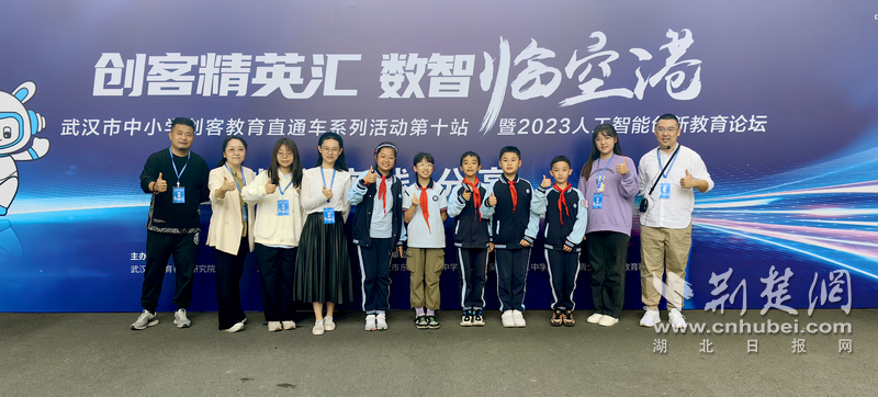 荆楚网(湖北日报网)讯(记者齐一璇、许文秀 通讯员吴菲、林嘉 摄影齐一璇)“嗖!嗖!”“呼——”10月27日,在武汉市东西湖初级中学的操场,一架架无人机不断升空,遥控固定翼花式飞行、遥控战斗机模型飞行,演绎空中圆舞曲;土地中长出的粮食作物,来到现场,被制作成美食;净化水质的水箱,咕噜咕噜冒着泡;缩小版模型蒸汽机传来阵阵鸣笛声。天上的、地下的、水中的……以“创客精英汇 数智临空港”为主题的武汉市中小学“创客教育直通车”系列活动(第十站)暨2023人工智能创新教育论坛在东西湖初级中学举行。