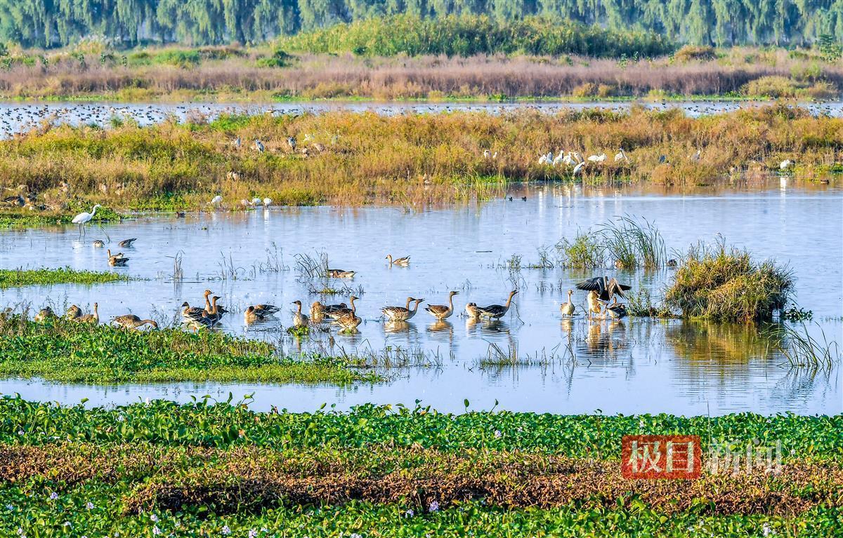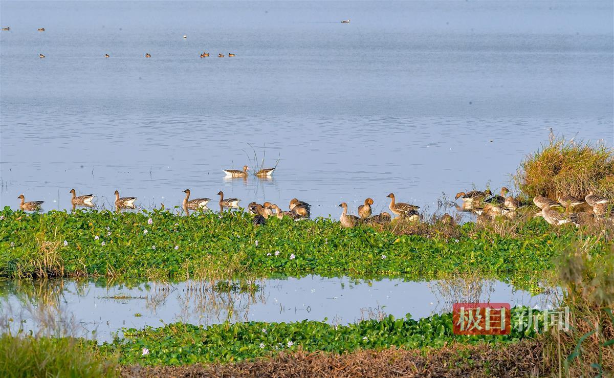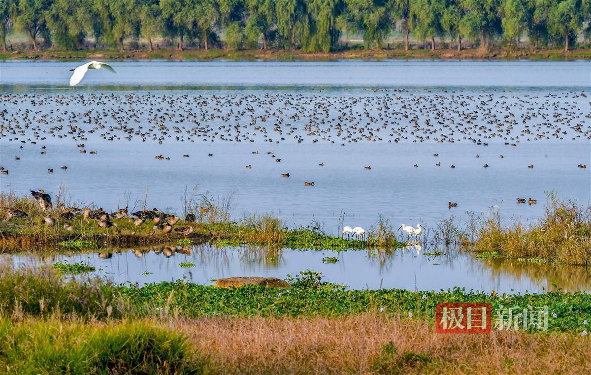“9月初第一批候鸟就已经飞抵这里,明显比往年来得早一些。”武汉市观鸟协会会员周东泉告诉记者,入秋以来,他几乎每天都会来这里拍鸟,初步估计湖中的候鸟目前已达5000只。但遗憾的是,目前尚未发现颇受大家期待的小天鹅的踪影。