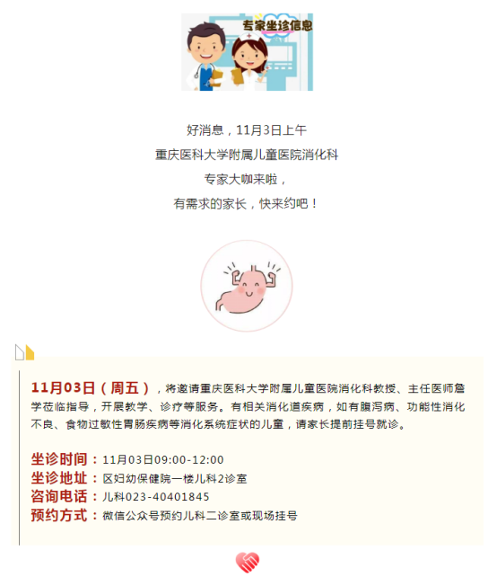 11月3日,儿童医院专家来区妇幼保健院坐诊!