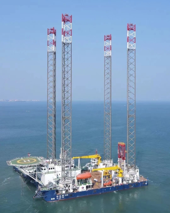 “华东院308号”是目前国内规模最大、技术指标最先进的海洋新能源综合勘探平台,可以在数十平方公里的范围内实现50公分的定位精度,作业区域可覆盖我国规划各海域风电场。