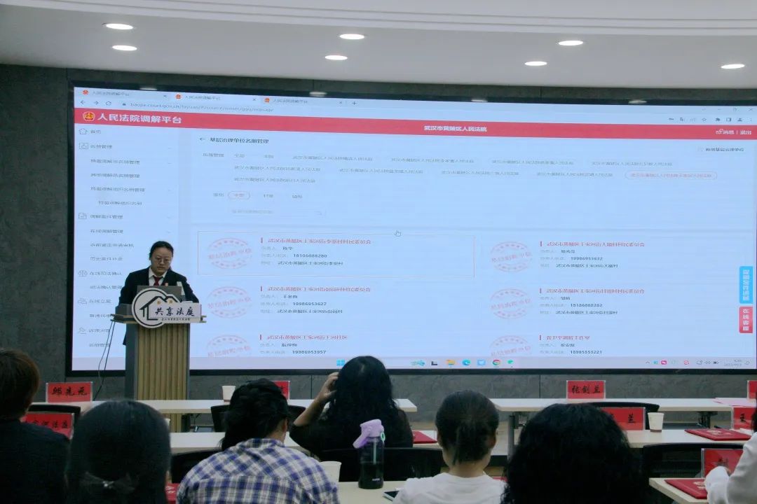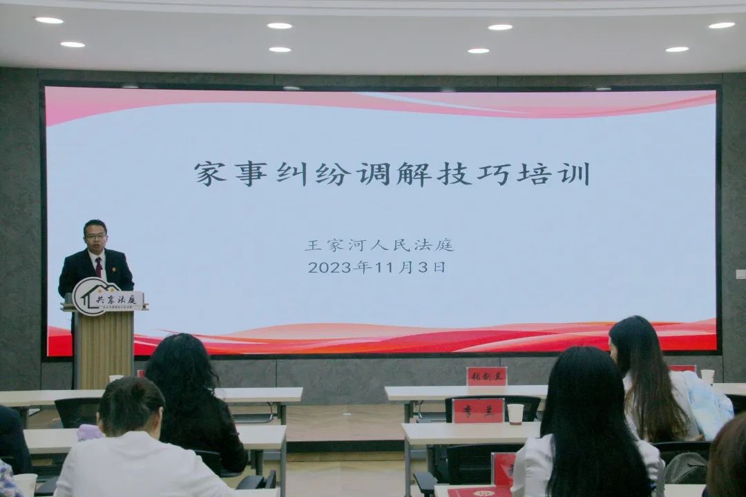 揭牌、授旗仪式结束后,区法院工作人员分别就家事调解技巧和人民法院调解平台操作流程向在场的家事调解员们进行了专题培训。