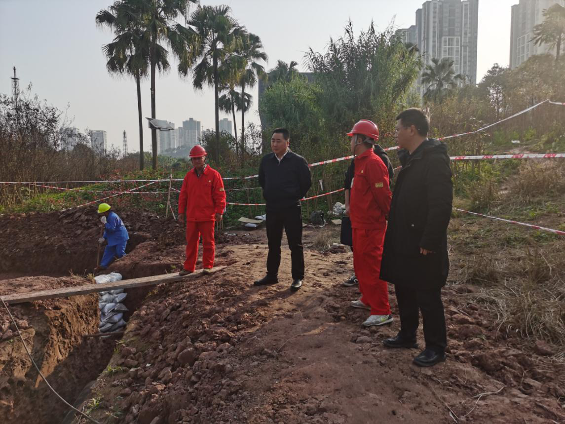 区发展改革委张涛主任、胡继均副主任国检国巡重大隐患专项检查焜田燃气在渡舟气站外的施工作业现场情况