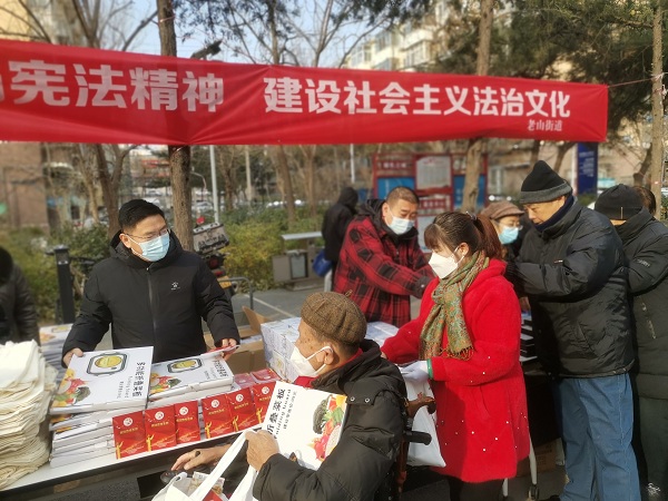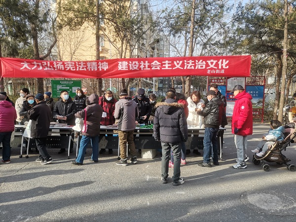 活动现场,街道办事处主任杨育忠、政法委员郝建军带领平安办、综合执法队携手老山派出所、区法院、区检察院,在老山东里社区广场开展国家宪法日宣传活动。通过摆放宣传展板、发放宪法宣传材料、开展法律咨询等宣传形式,为居民讲解依宪治国、依宪执政的理念,对群众关心的电信诈骗、民间借贷、房屋合同、加装电梯等热点问题提供专业解答,引导广大居民加强自身防范,拒绝参加各类违法犯罪活动,增强法治观念。此次法治宣传活动,共发放宪法宣传材料及宣传品400余份,现场解答群众咨询10余次。