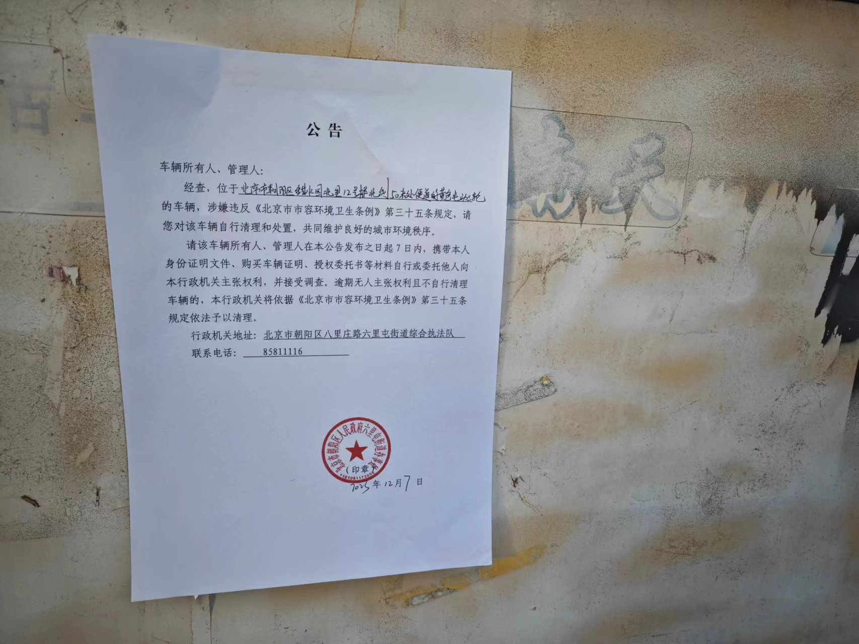 六里屯街道关于清理整治废弃电动三四轮车的公告(甜水园北里12号...