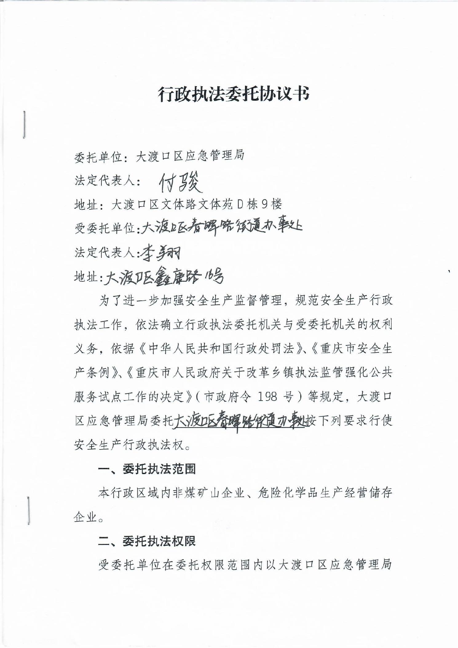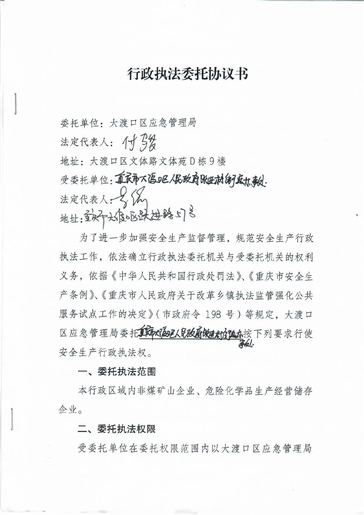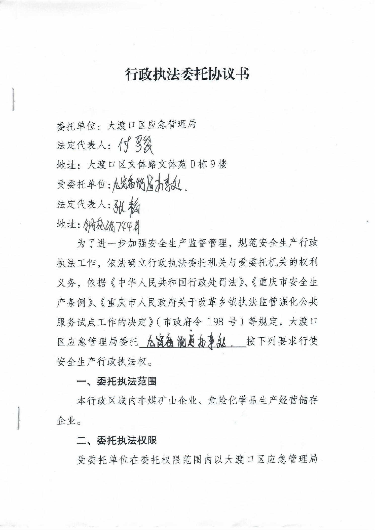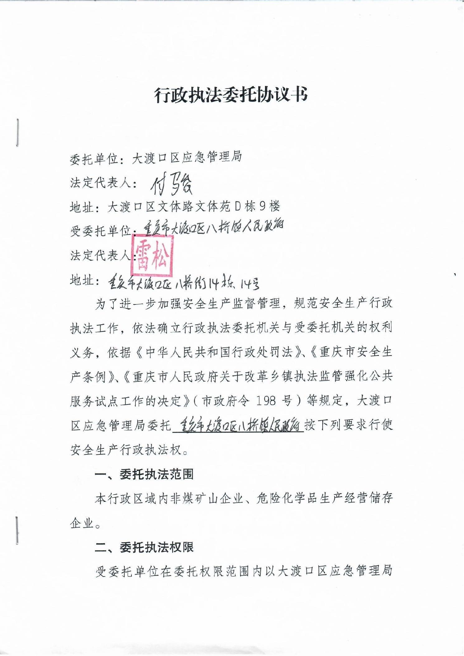 大渡口区应急管理局行政执法委托协议书