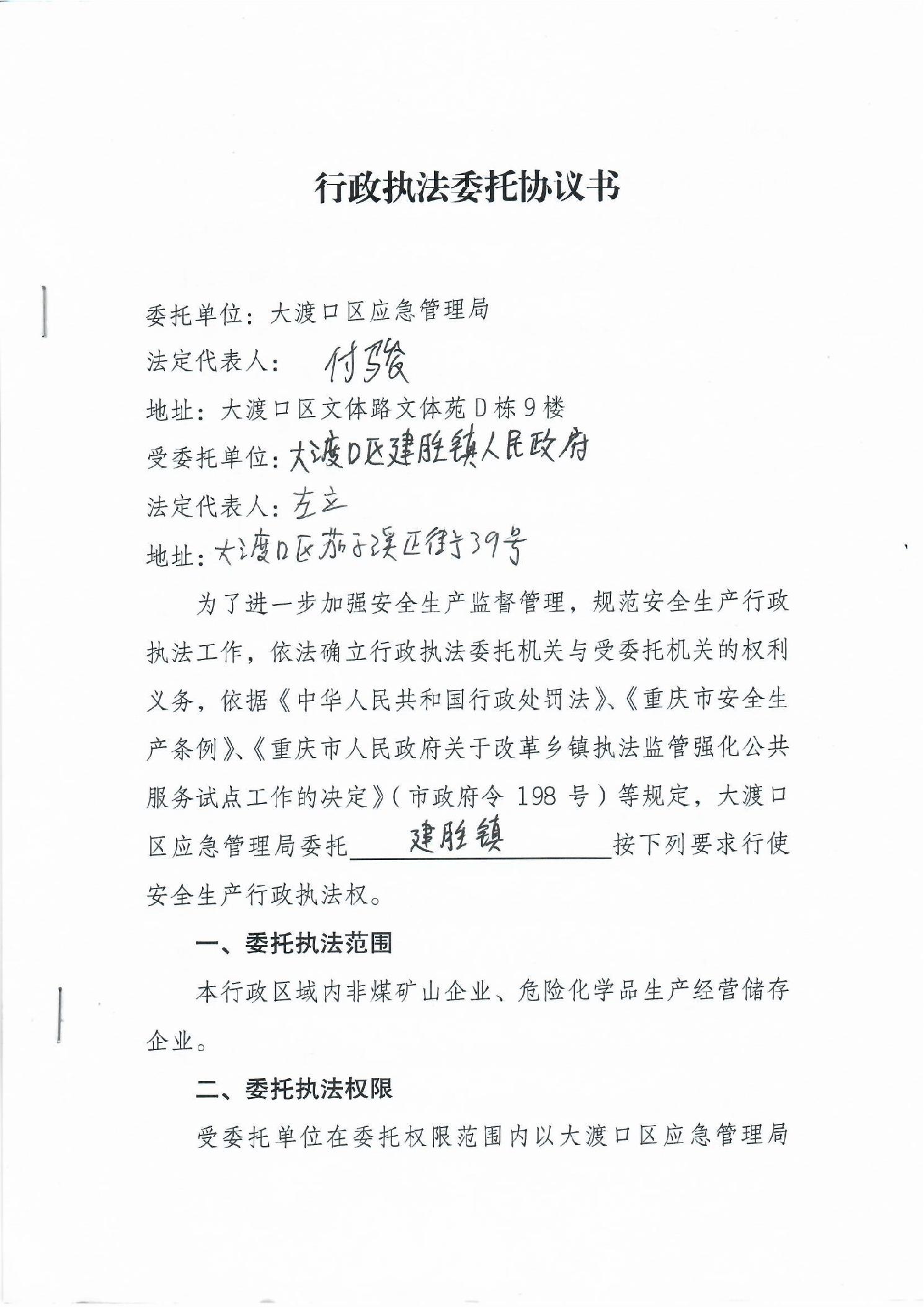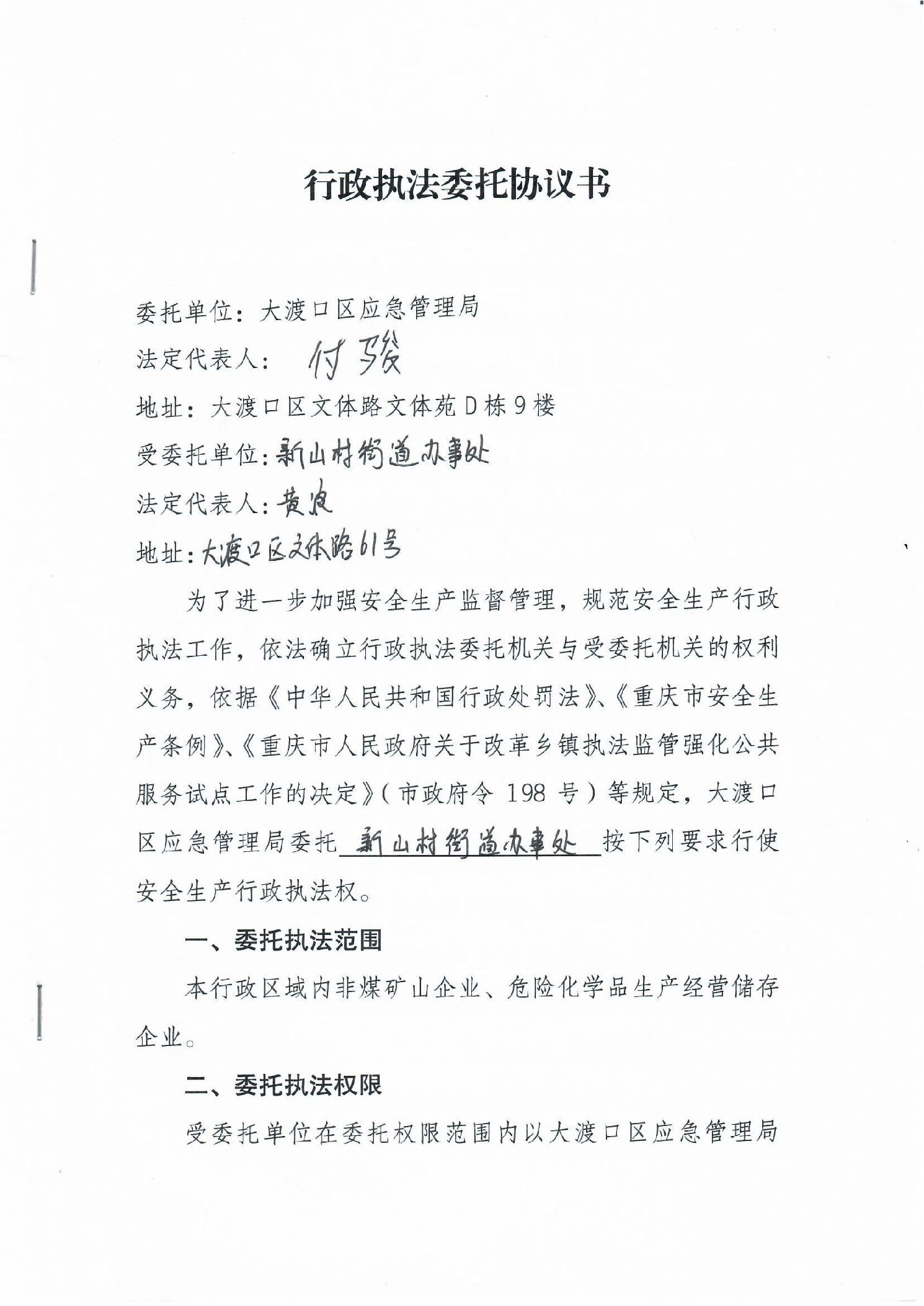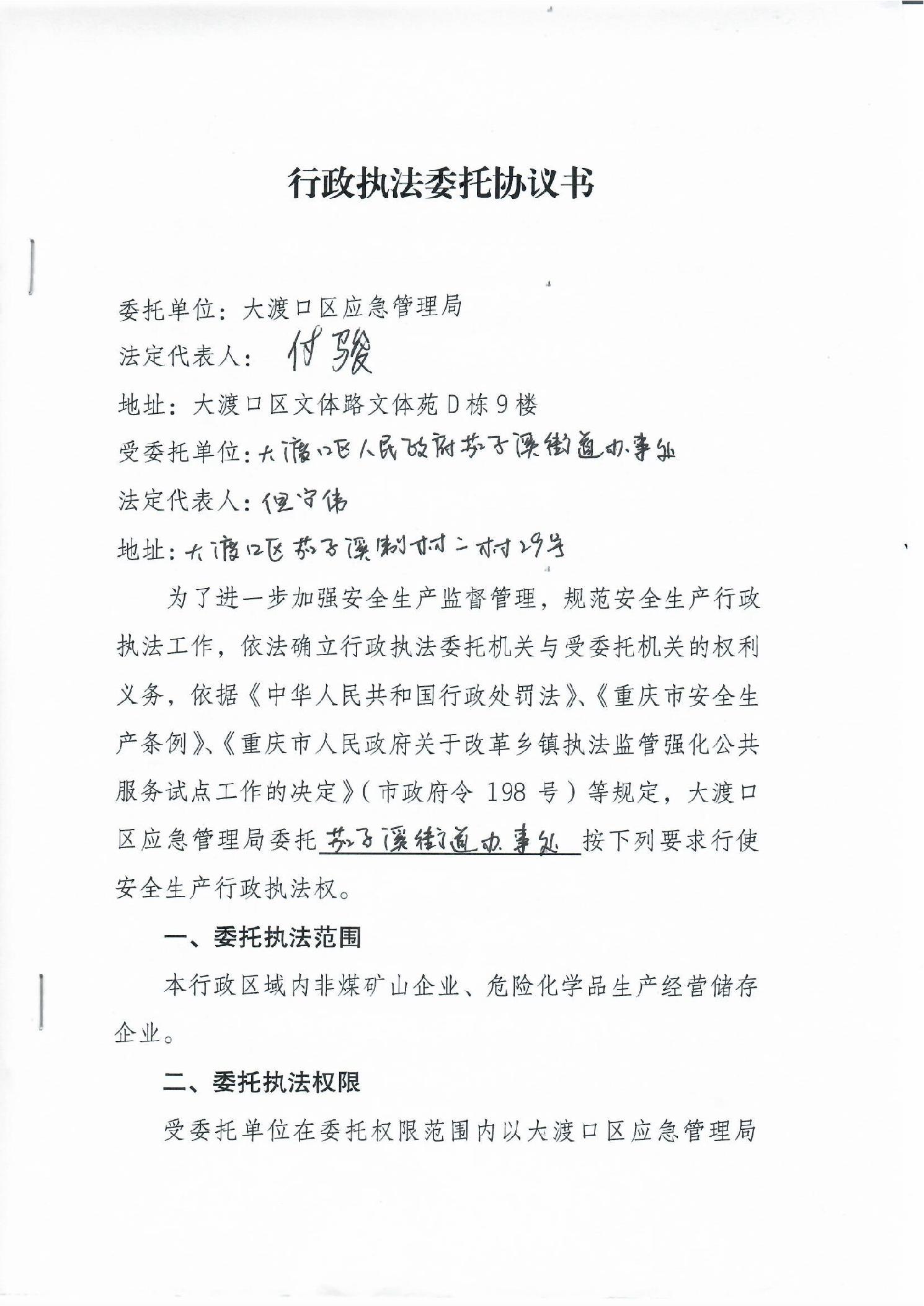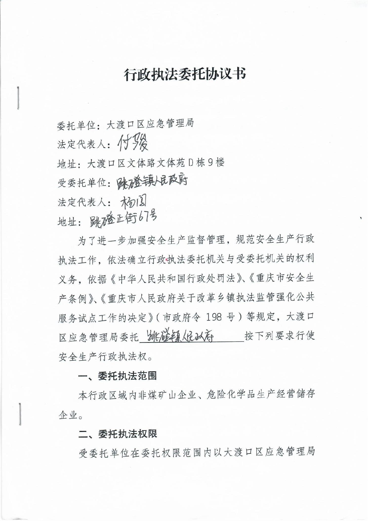 大渡口区应急管理局行政执法委托协议书