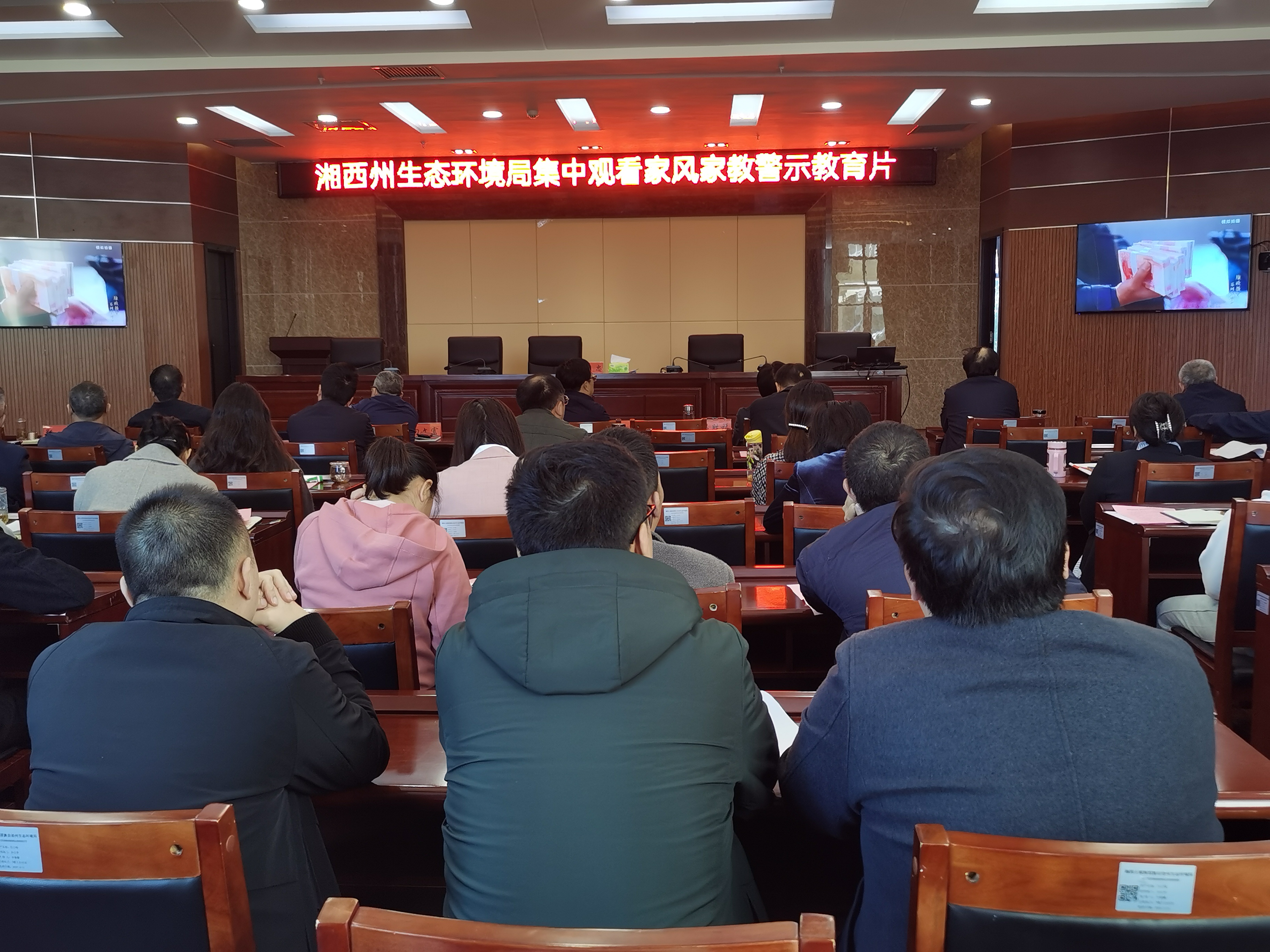 今年以来,湘西州生态环境局先后承办了州直清廉机关建设工作座谈会,组织开展了全系统科级干部作风培训会、上廉政党课、“树清廉家风 创清廉机关 促生态文明”倡议活动、集中观看警示教育片等形式多样内容生动的清廉机关建设活动。活动紧扣“政治清明、为政清廉、干部清正、作风清新、家风清朗”目标,学习用身边的榜样,警醒用身边案例,对照“生态环保铁军”标准,抓管理、重教育、强党性、树形象,全力打造“清廉环保”机关。
