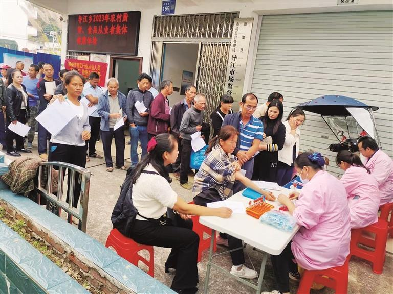 近日,鹿寨县导江乡邀请鹿寨县妇幼保健院体检科到该乡开展送医下乡活动,为该乡农村厨师及食品从业人员集中提供免费健康体检,办理健康证明。此次活动受到大家欢迎,有助于筑牢该乡食品安全工作防线。(潘梅)