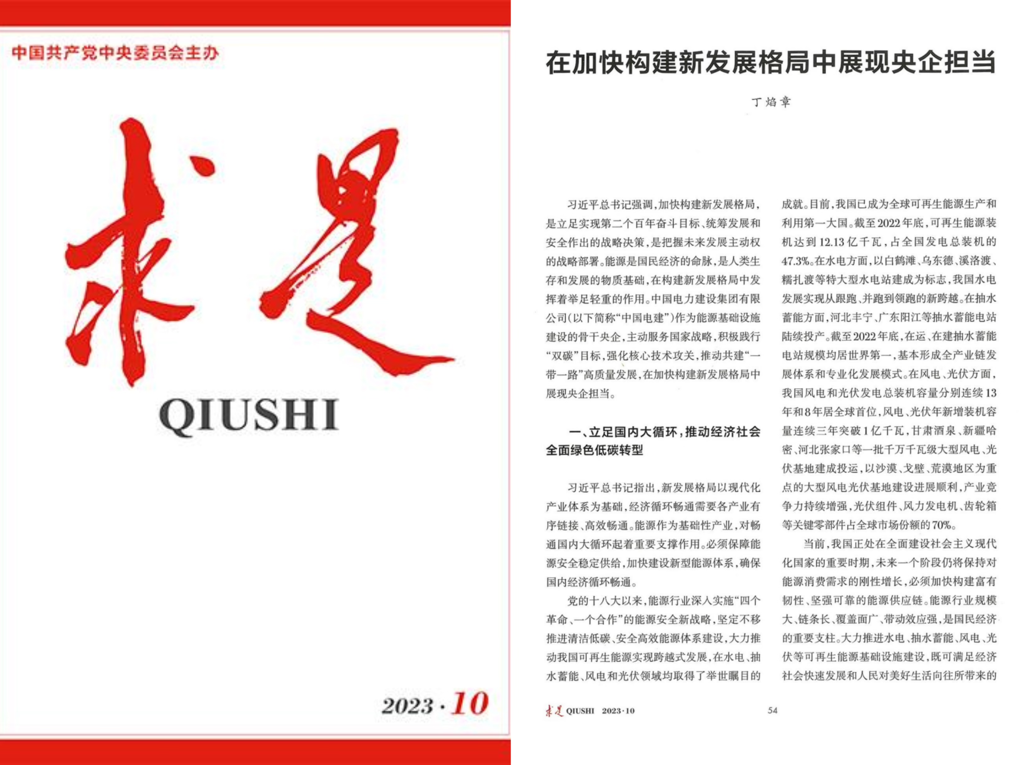 中国电建党委全面领会习近平新时代中国特色社会主义思想的理论内涵和实践要求,抓好党的创新理论学习及宣传阐释,整合公司内外研究力量优势,围绕习近平总书记关于国有企业改革发展和党的建设重要论述,组织开展重大课题研究,持续推出一批有价值、有分量的研究成果,从中汲取破解改革发展难题的智慧和方法,教育引导广大干部职工不断增进对党的创新理论的政治认同、思想认同、理论认同、情感认同,真正把学习成果转化为加快建设世界一流企业的实践效果。公司党委书记、董事长丁焰章《在加快构建新发展格局中展现央企担当》《增强党组织政治功能和组织功能 引领保障企业高质量发展》《以高质量党建引领保障央企高质量发展》等多篇署名文章先后在《求是》《学习时报》《党建研究》《思想政治工作研究》刊发,得到系统内外高度评价。充分发挥“传家宝”和“生命线”作用,思政课题研究成果丰硕。公司党建思想政治课题研究工作相关经验在中央企业党建政研会上作典型发言。公司首次荣获年度全国政研会工作优秀单位,1项课题荣获中国政研会2022年度二类优秀研究成果,创历史最好成绩。