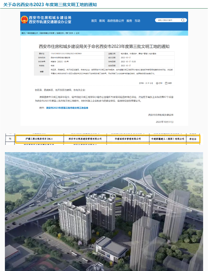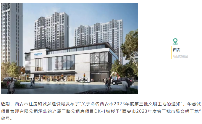 华睿诚项目管理有限公司在监项目被授予“西安市2023年度第三批市级文明工地”称号