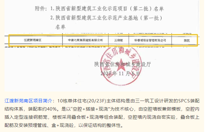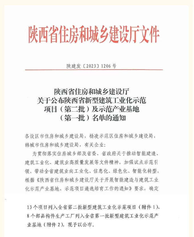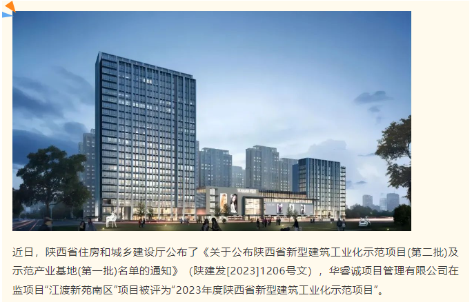 喜讯丨华睿诚项目管理有限公司在监项目被评选为“2023年度陕西省新型建筑工业化示范项目”