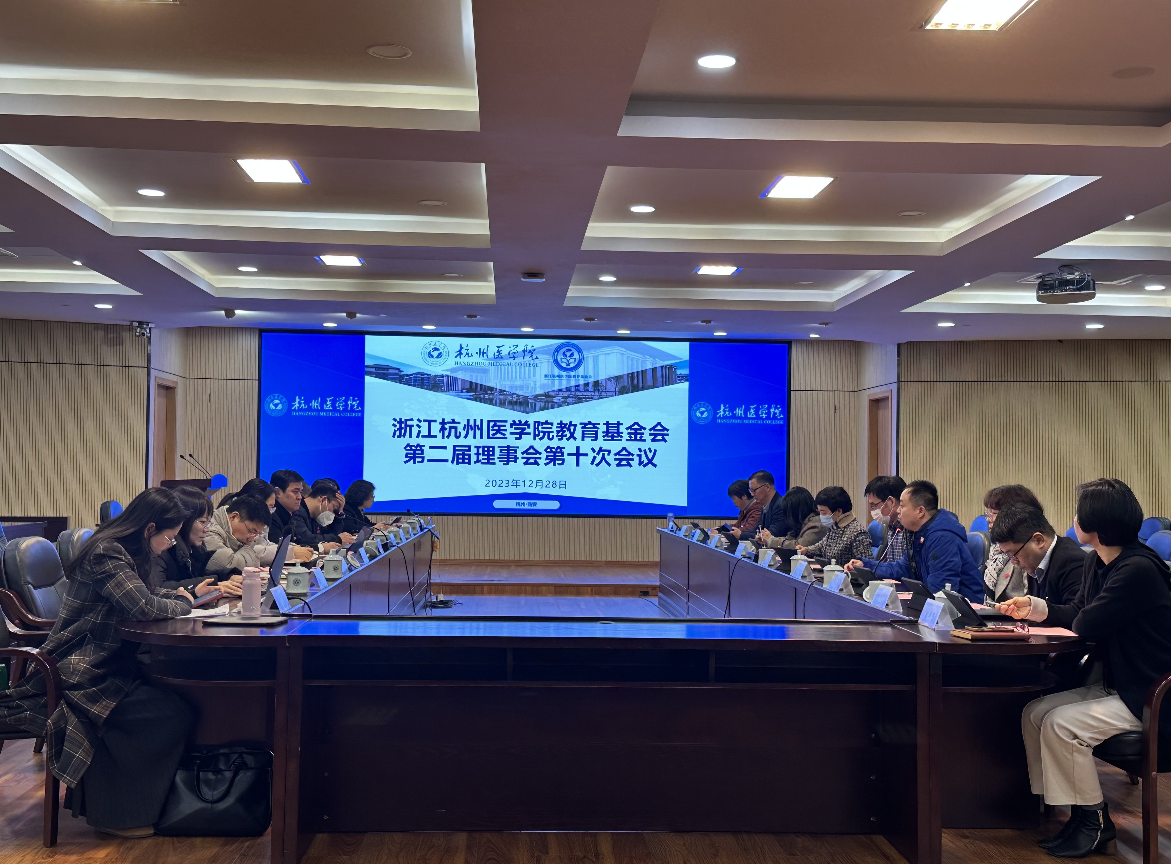 2023年12月28日,浙江杭州医学院教育基金会第二届理事会第十次会议在杭州医学院临安校区图书馆四楼国际会议室举行。杭州医学院校长、党委副书记梁广出席会议,学校教育基金会第二届理事、监事和工作人员参加会议,会议由基金会理事长邵利明主持。