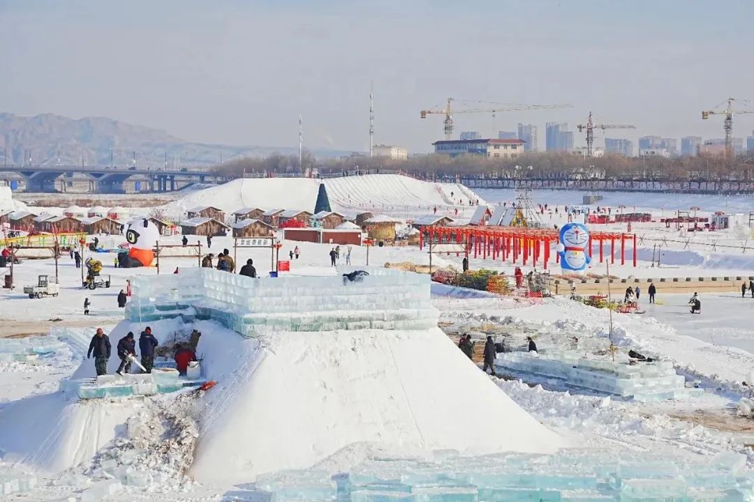 星光·冰雪嘉年华以契丹大街东段南侧、牧歌路东侧、乌良苏街北侧原松山区星光夜市作为主场地,规划占地面积3万平米。项目计划建设内容包含40米地标冰塔、200米冰滑道、300米冰雕巨龙、滑雪赛道、雪雕景观、儿童综合雪上娱乐区、商业区、停车场等。目前主体雪滑道、冰雕巨龙等已完成,正在进行雪雕美工、灯光布设、基建等工作。