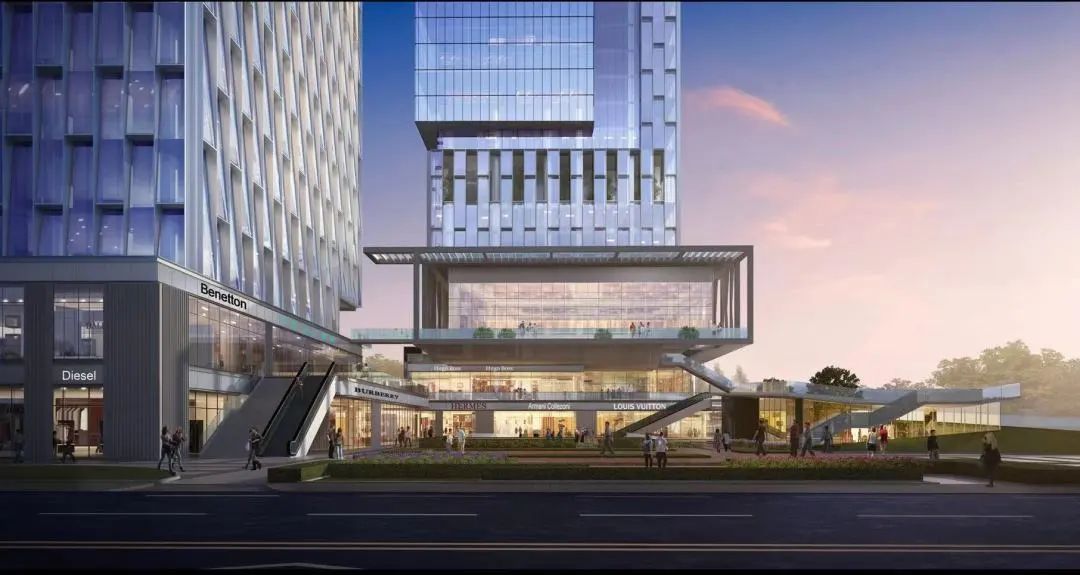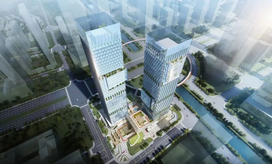 国际化办公写字楼、高端服务业商业于一体的综合服务型项目规划效果图。