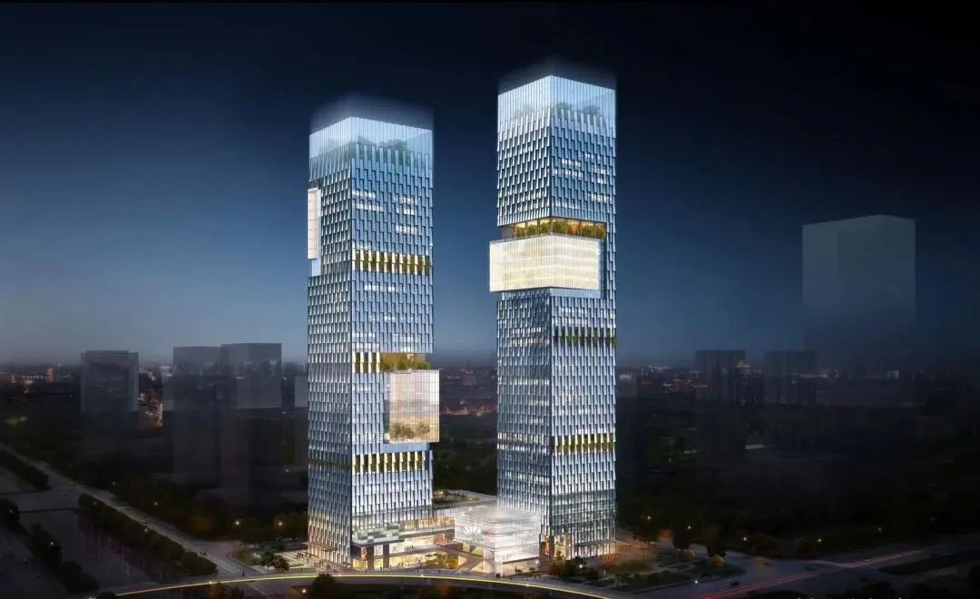 湖北交投实业总部大厦——双子塔企业总部,位于汉阳区江城大道与四新大道交叉口以南B7地块。项目投资额约20亿元,由2栋超高层塔楼、商业裙房和3层地下室组成,总建筑面积204636平方米,其中地上137762.96平方米,地下66873.4平方米。