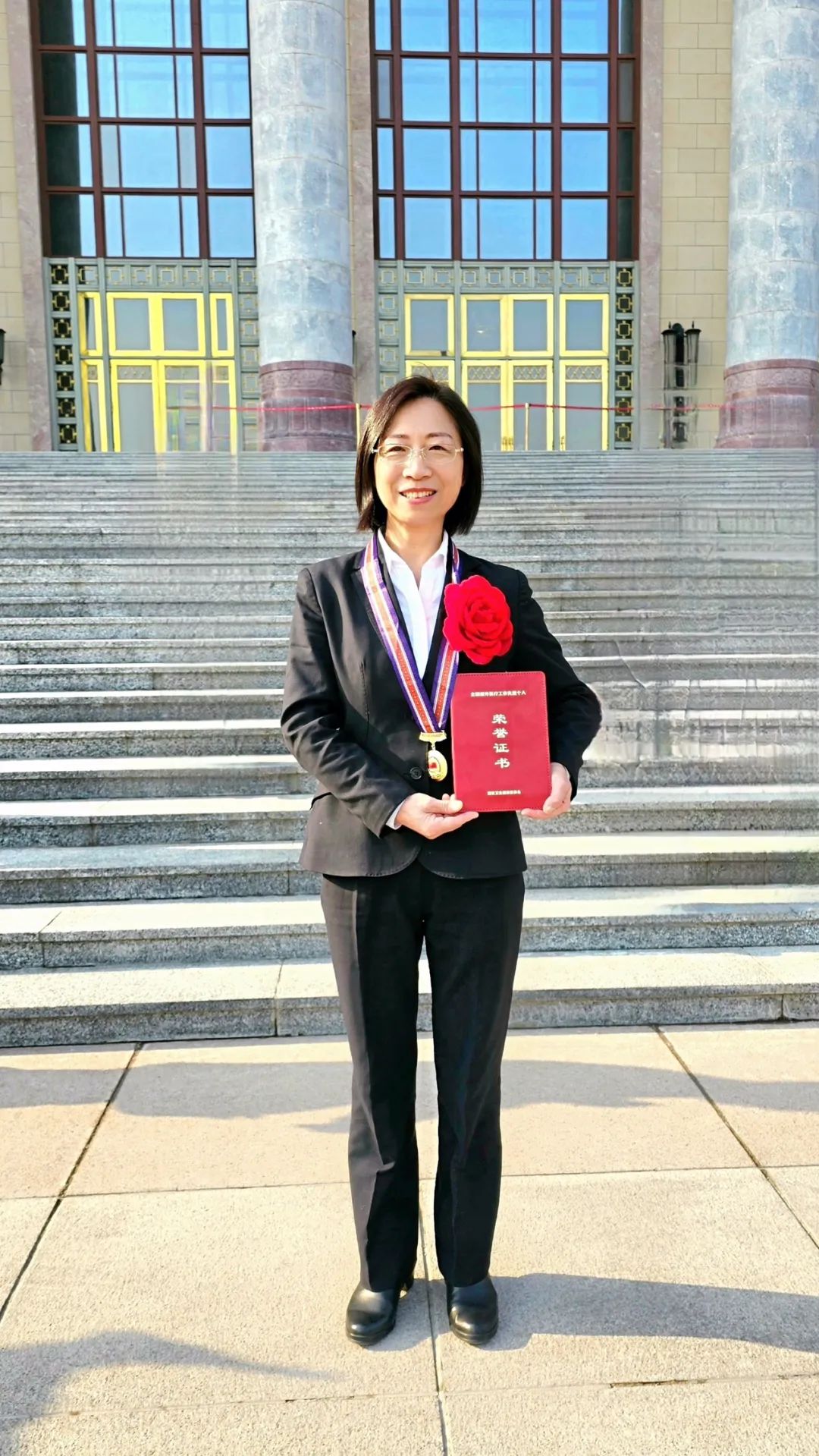 艾红艳在人民大会堂前拍照留念。