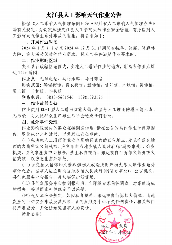 | 所在地区: | 四川-乐山-夹江县 | 发布日期: | 2024年1月4日 |