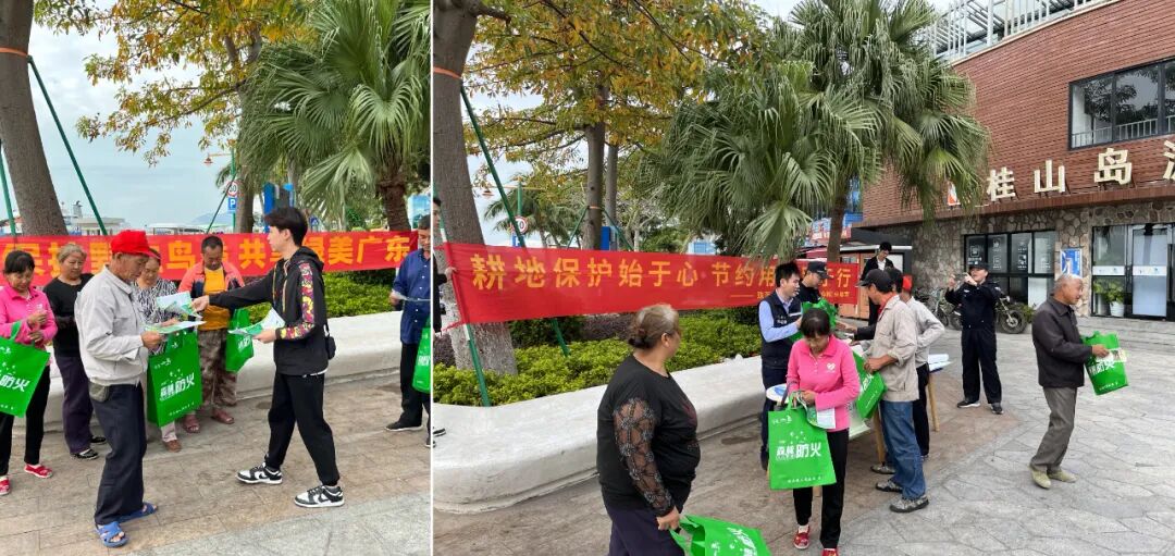 宣讲会结束后,联合巡查组在桂山镇文天祥纪念广场开展了“知地、知法、知规”为主题的“三知”送法送图入村、“保护野生鸟类 共享绿美广东”“坚决遏制农村乱占耕地建房行为”和“整治违法违规用地,保住耕地生命线”等一系列宣传互动,向游客、海岛居民和驻岛工作人员派发了“我为绿美广东种棵树”和保护耕地“八不准”等宣传资料。