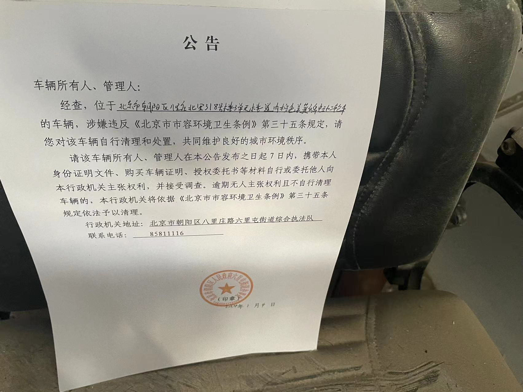 六里屯街道关于清理整治废弃电动三四轮车的公告(八里庄北里318...