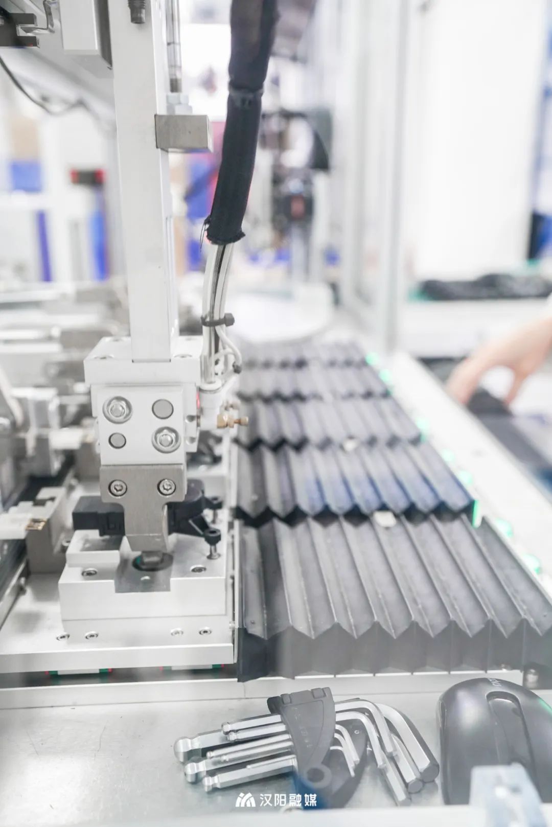 走进位于联东U谷产业园的显捷电子,崭新的车间、全新的智慧化生产线引人注目。2023年8月,为顺应发展需要,武汉显捷电子有限公司搬入了新的产业园。同时投用的全自动智慧化生产线,实现了从投料、制作、装箱等全流程自动化生产,原来需要十多个工人同时花费一分钟完成的零部件组装任务,现在全部由机器完成,且时间缩短至7秒。