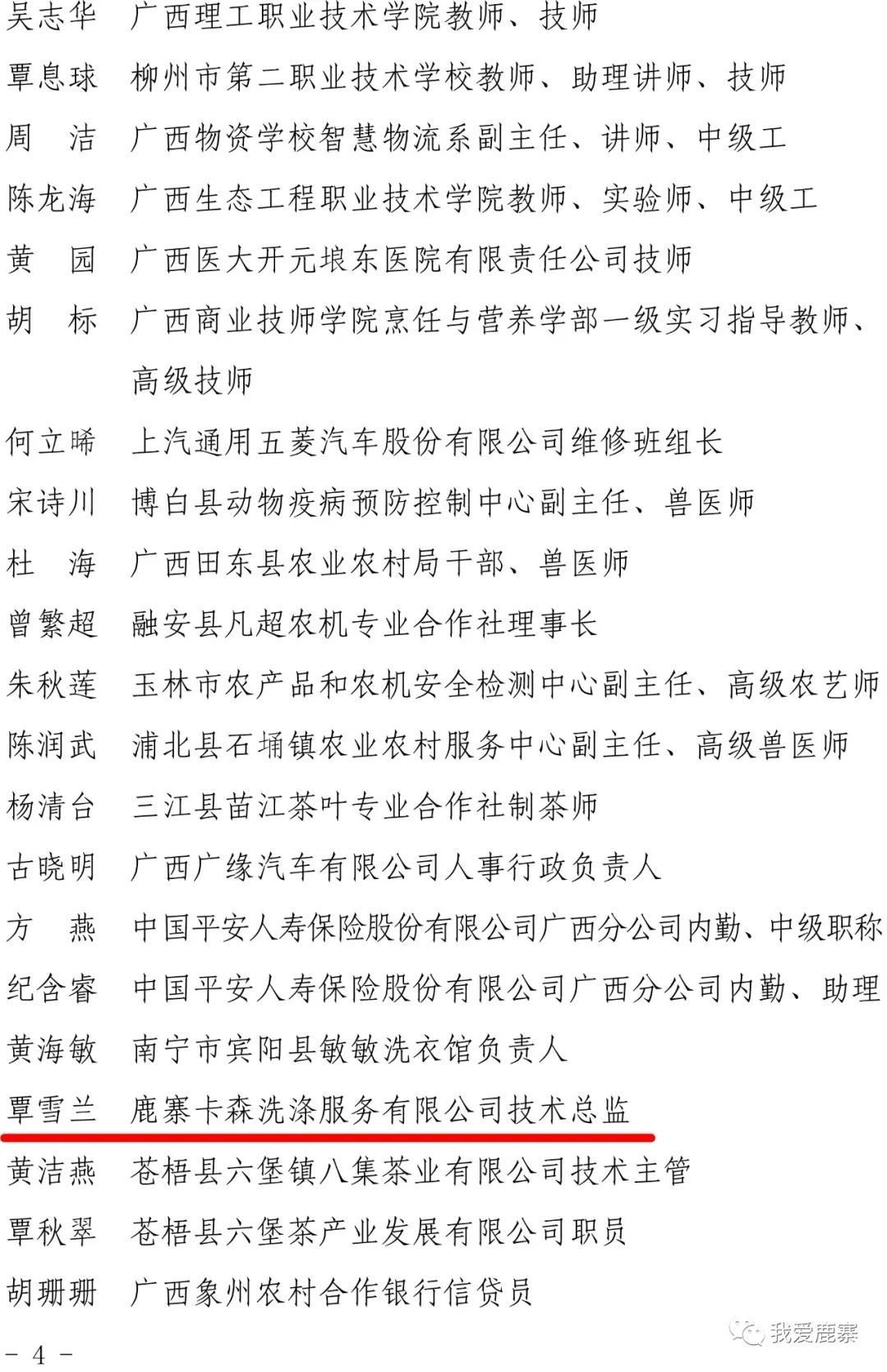 日前,自治区总工会决定授予在2022年“桂有技能、产业振兴”劳动和技能竞赛中取得优异成绩的陆镜光等71名同志广西五一劳动奖章。其中,鹿寨卡森洗涤服务有限公司技术总监覃雪兰获得这一奖章。