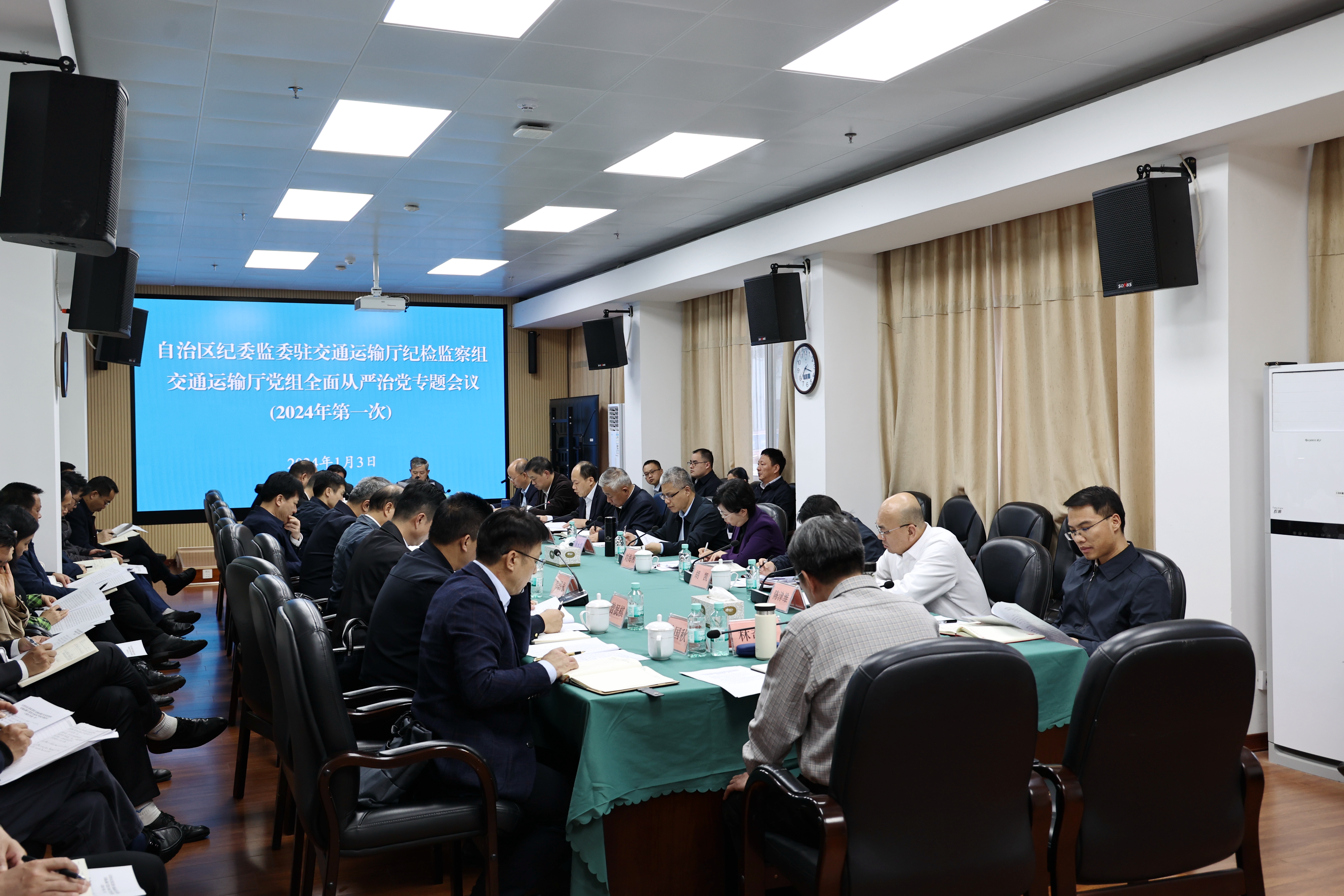 南宁讯(黄静兰 通讯员?李方 邓赛梅 摄影报道)1月3日,自治区交通运输厅党组在南宁召开全面从严治党专题会议。会议深入贯彻落实党的自我革命战略思想和习近平总书记关于全面从严治党的重要论述,专题研究全区交通运输系统全面从严治党工作。自治区交通运输厅党组书记、厅长刘可主持会议并讲话,自治区纪委监委驻自治区交通运输厅纪检监察组组长刘海湘出席会议并讲话,自治区交通运输厅副厅长陆晓明出席会议并通报2023年度全面从严治党主体责任落实情况。